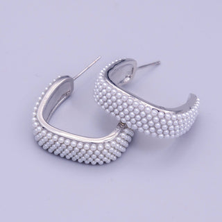 16K Gold Filled Pearl Lined Boxy C-Shaped Hoop Earrings