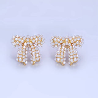 14K Gold Filled Pearl Ribbon Bow Stud Earrings