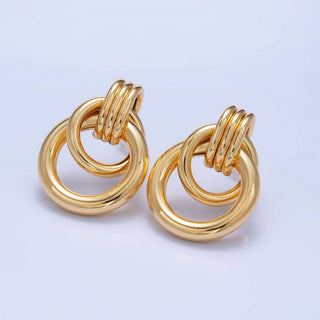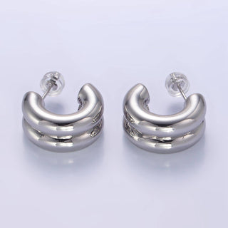 24K Gold Filled Round Pearl Lined 23.6mm U-Shaped Latch Earrings | Y205
