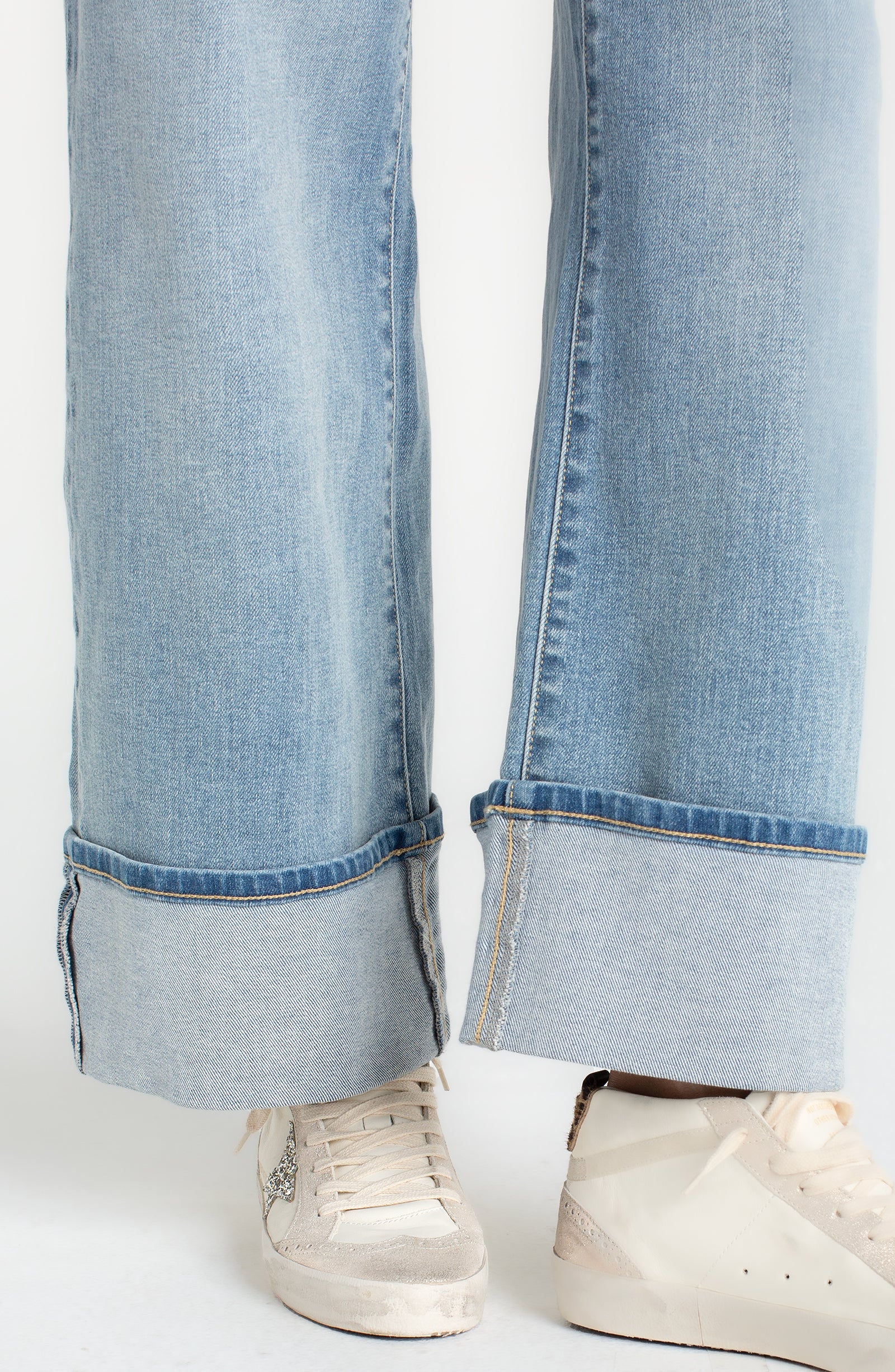Effortless style meets comfort in these Morgan wide-leg denims from Liverpool. The relaxed silhouette and cuffed hem create an easy, laid-back vibe, while the crisp lighter wash keeps things fresh and breezy—ideal for those warmer days when you want to look put-together without trying too hard. At 30" inseam, they're ready to go straight from closet to street.