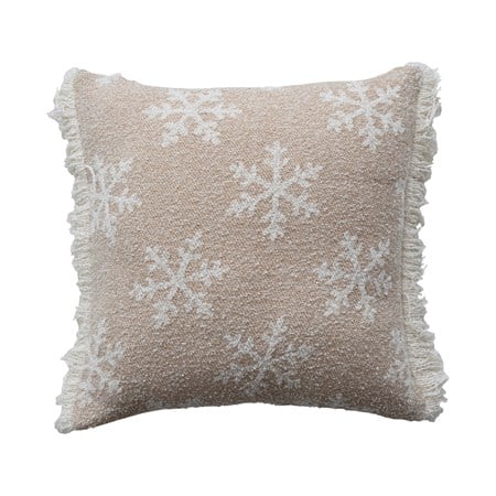 This square pillow captures the serene beauty of winter with its cotton canvas cover, meticulously embroidered with a snowflake motif and accented with shimmering beads. The natural, white, and gold color scheme evokes a sense of peaceful winter nights, while the durable polyester fill ensures comfort and longevity.