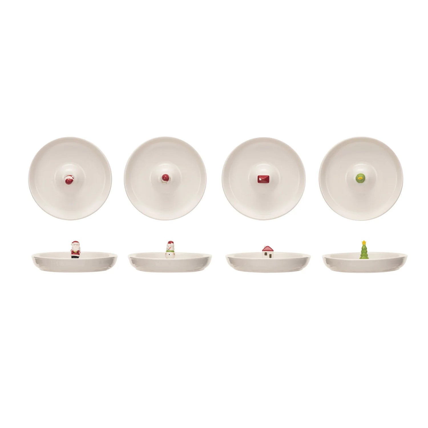 These stoneware holiday dishes are a perfect way to dress up a dresser or nightstand.