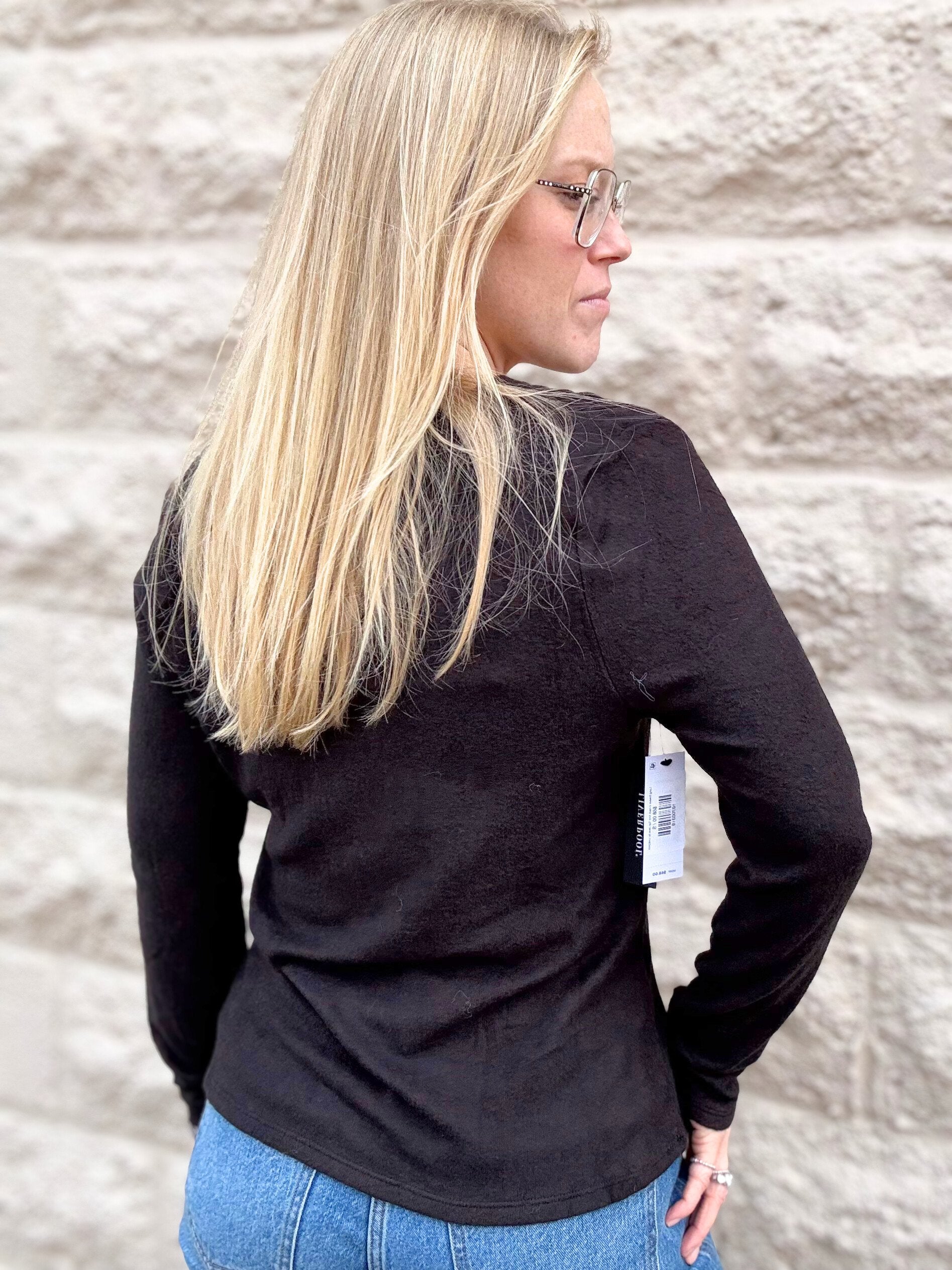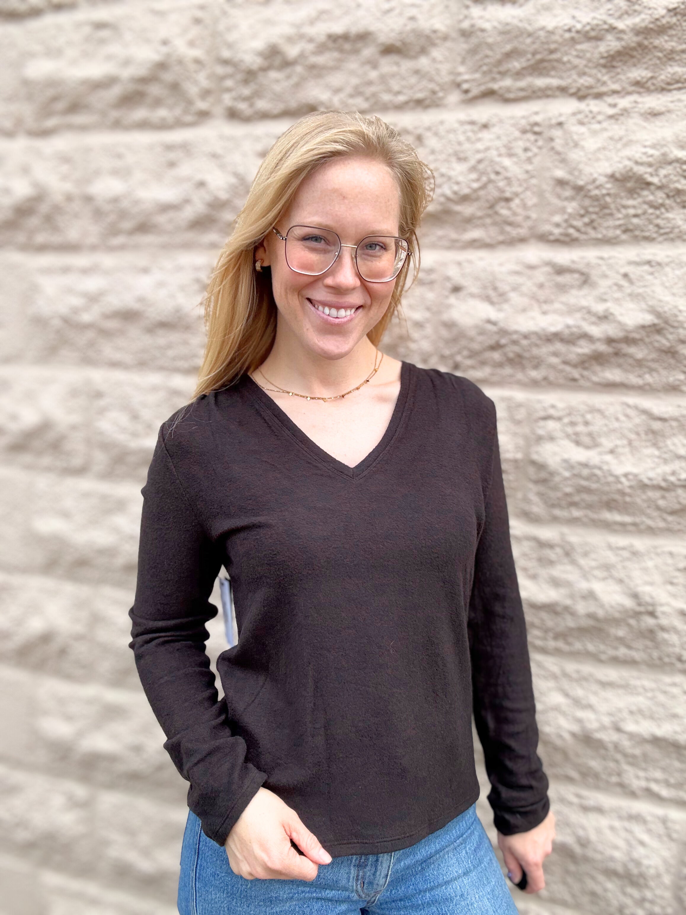 Our long sleeve v-neck top from Liverpool is a perfect layering piece for fall and winter. Created from super soft hacci knit you will LOVE the way she feels.