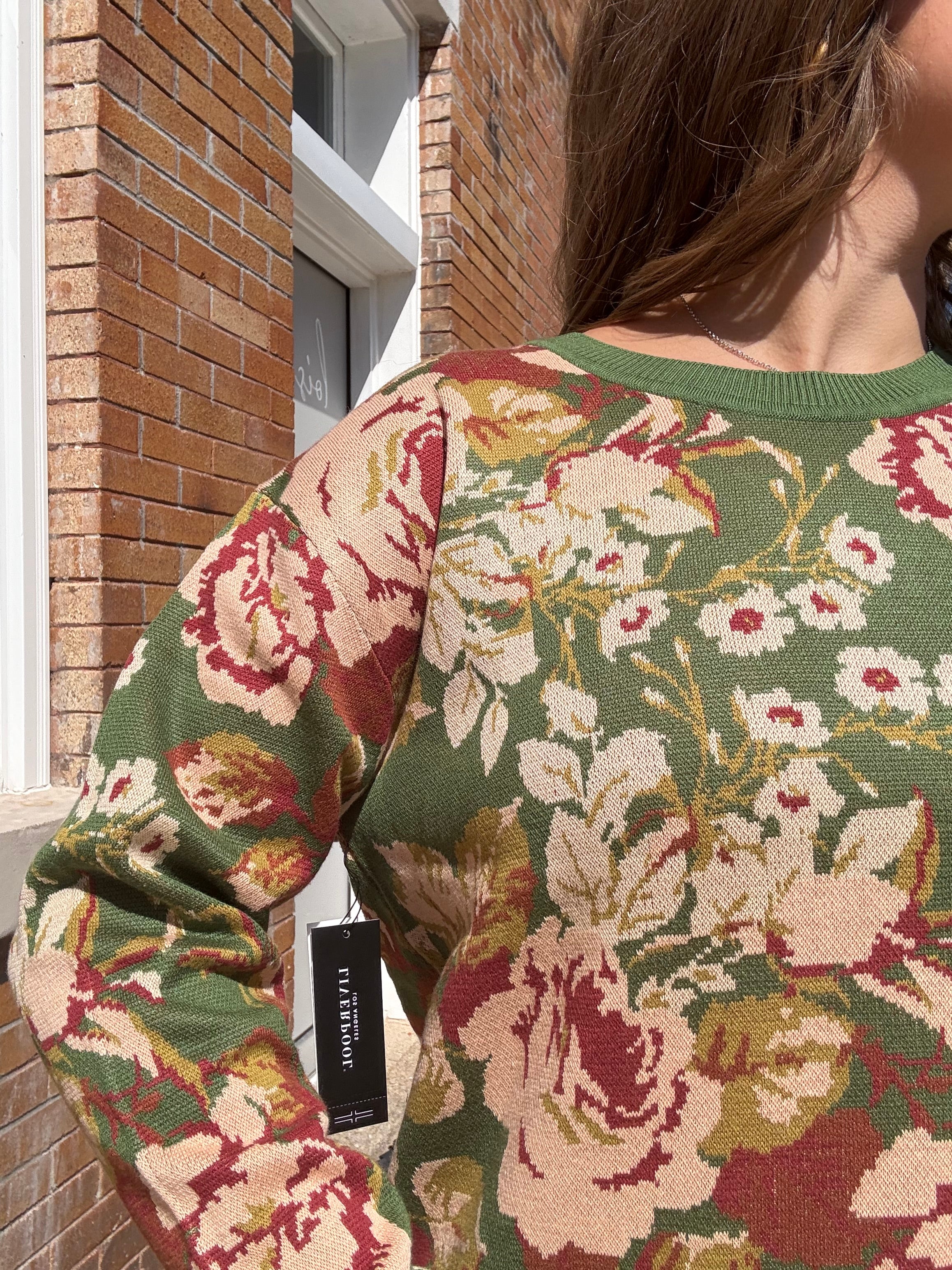 Crafted in bold floral knit, this sweater brings a fun splash of flair to your daily wardrobe. With its easygoing fit, slouchy drop shoulders, and snug ribbed edges, it balances cozy vibes with eye-catching style.