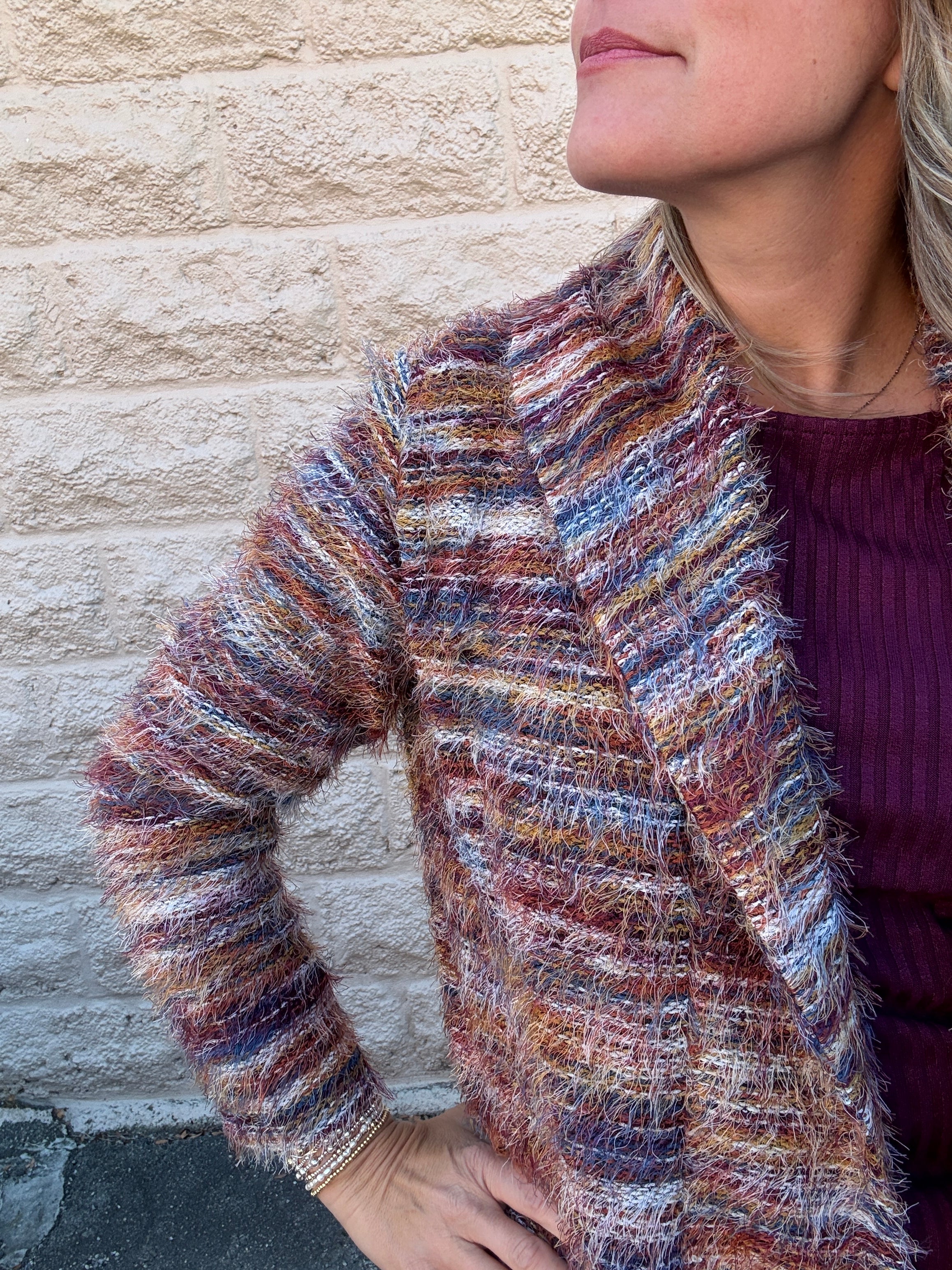 When the seasons begin to change and you need a timeless cardigan this is your go to! Crafted from the softest eyelash knit yarns, this cardigan feels like you are wearing a warm hug.
