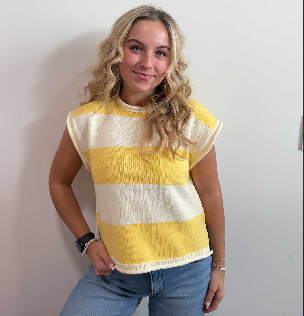 This cheerful striped sweater pairs soft, cozy comfort with effortless versatility. Rock it solo for a pop of color or layer it over your favorite tee for extra warmth. The perfect spring essential that transitions seamlessly from casual days to weekend adventures.
