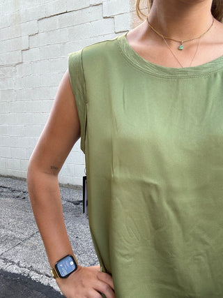 Sleeveless Woven to Knit Top Artichoke by Liverpool