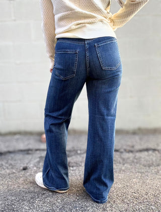 Bootcut Pintuck Denim Trousers by Liverpool 32"