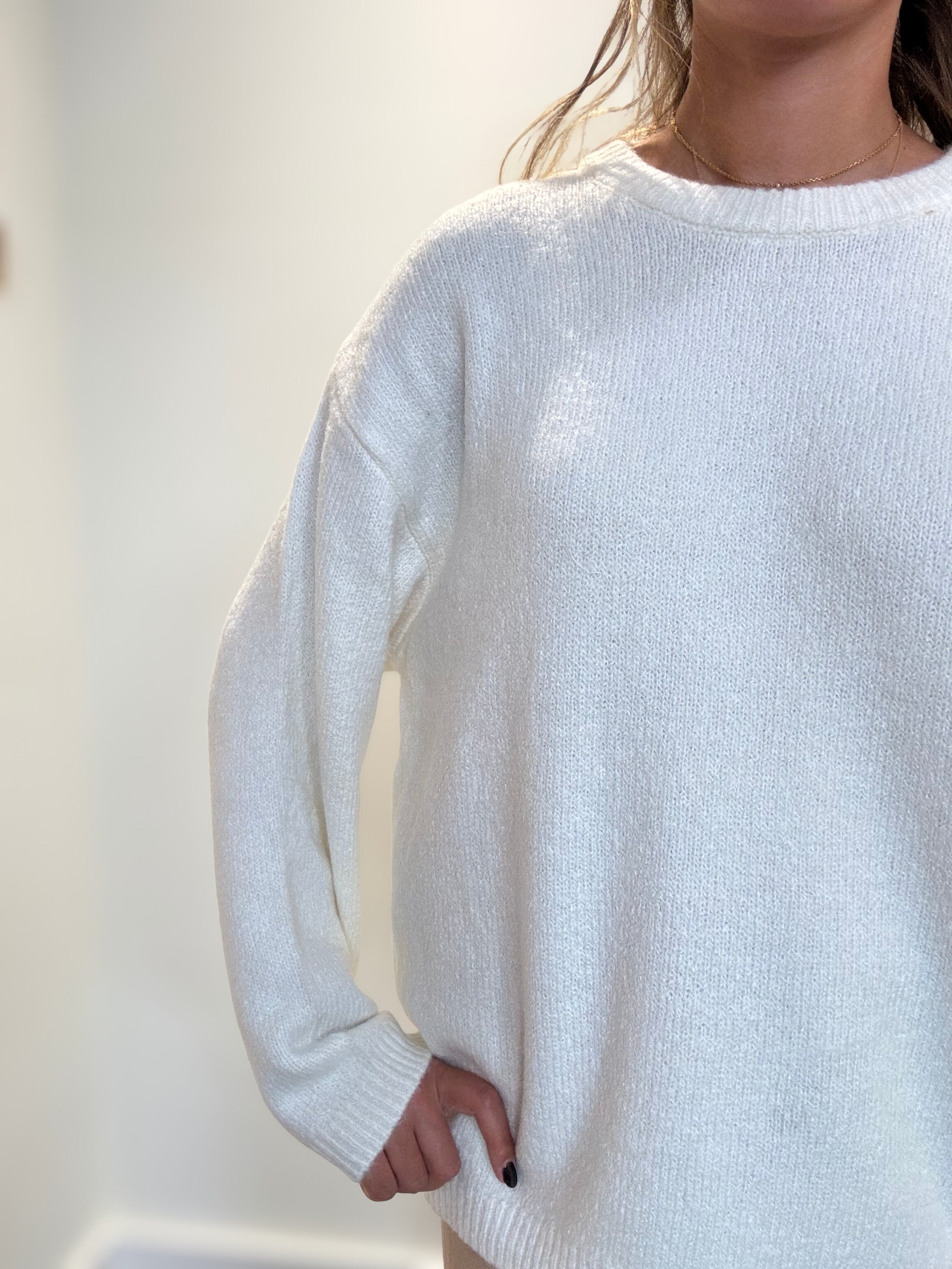 Indulge in cozy vibes with the Snowed In Sweater in Warm White by Z Supply. Crafted from a soft mohair-blend yarn, this oversized crewneck feels like a warm hug with a touch of playful texture. Its relaxed fit and midweight fabric make it perfect for layering—from lazy mornings to stylish evenings. Long sleeves and a crew neck keep things classic, while a heavy soft wash ensures ultimate comfort. Get ready to snuggle up and step out in easygoing style!