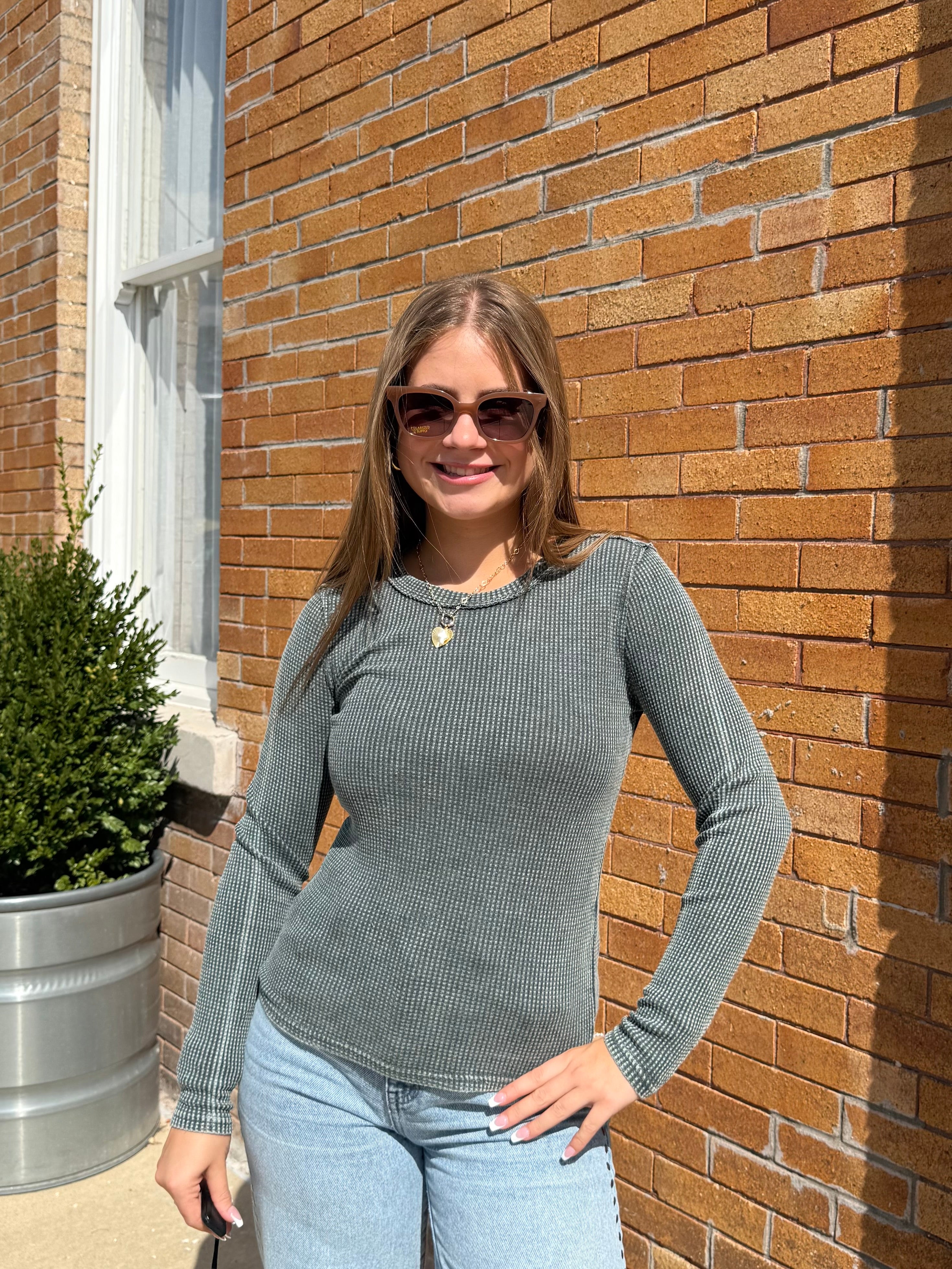 Arlet is the coziest waffle knit top! Perfect on her own, or layered with your favorite flannels and vests.