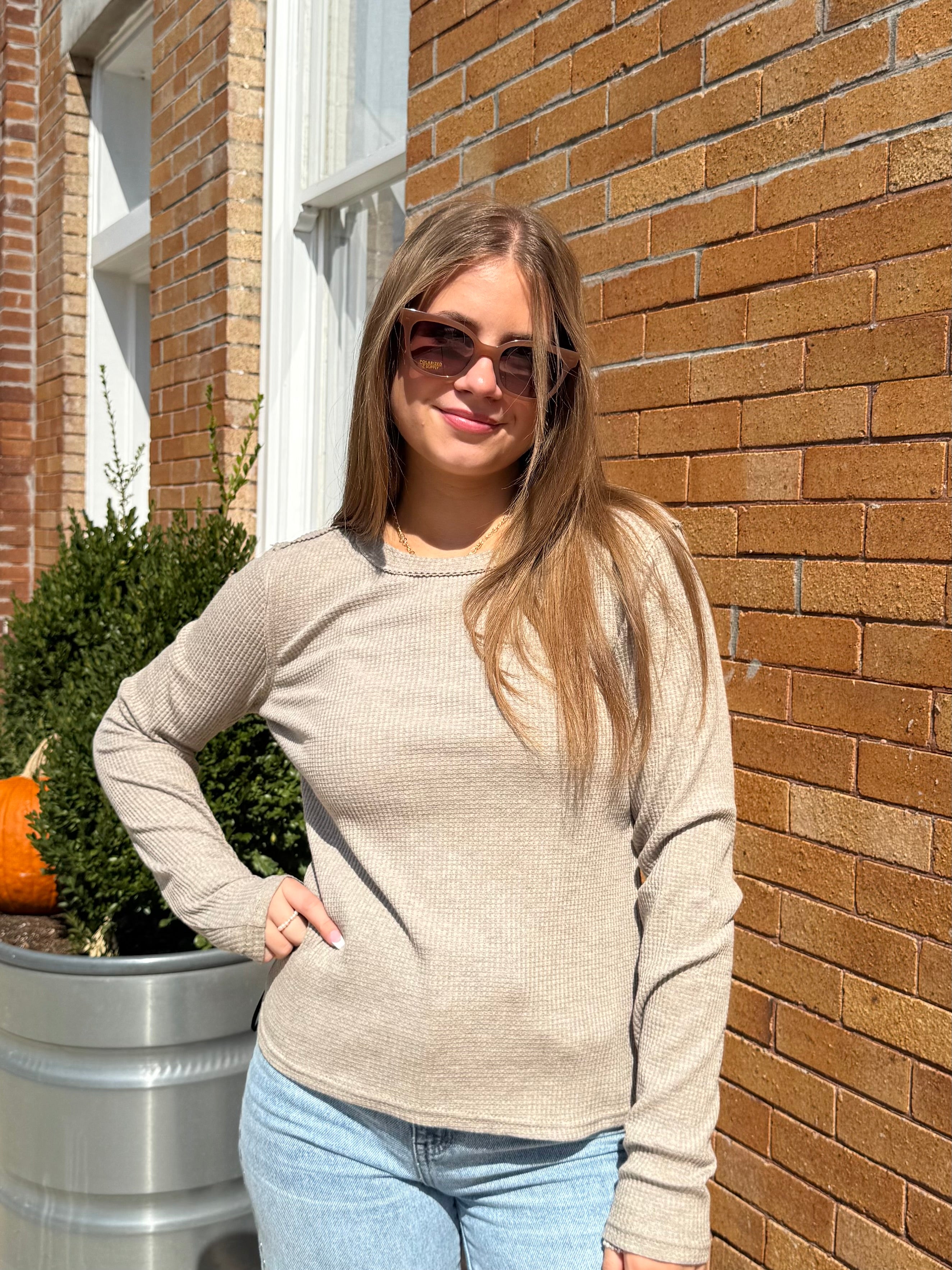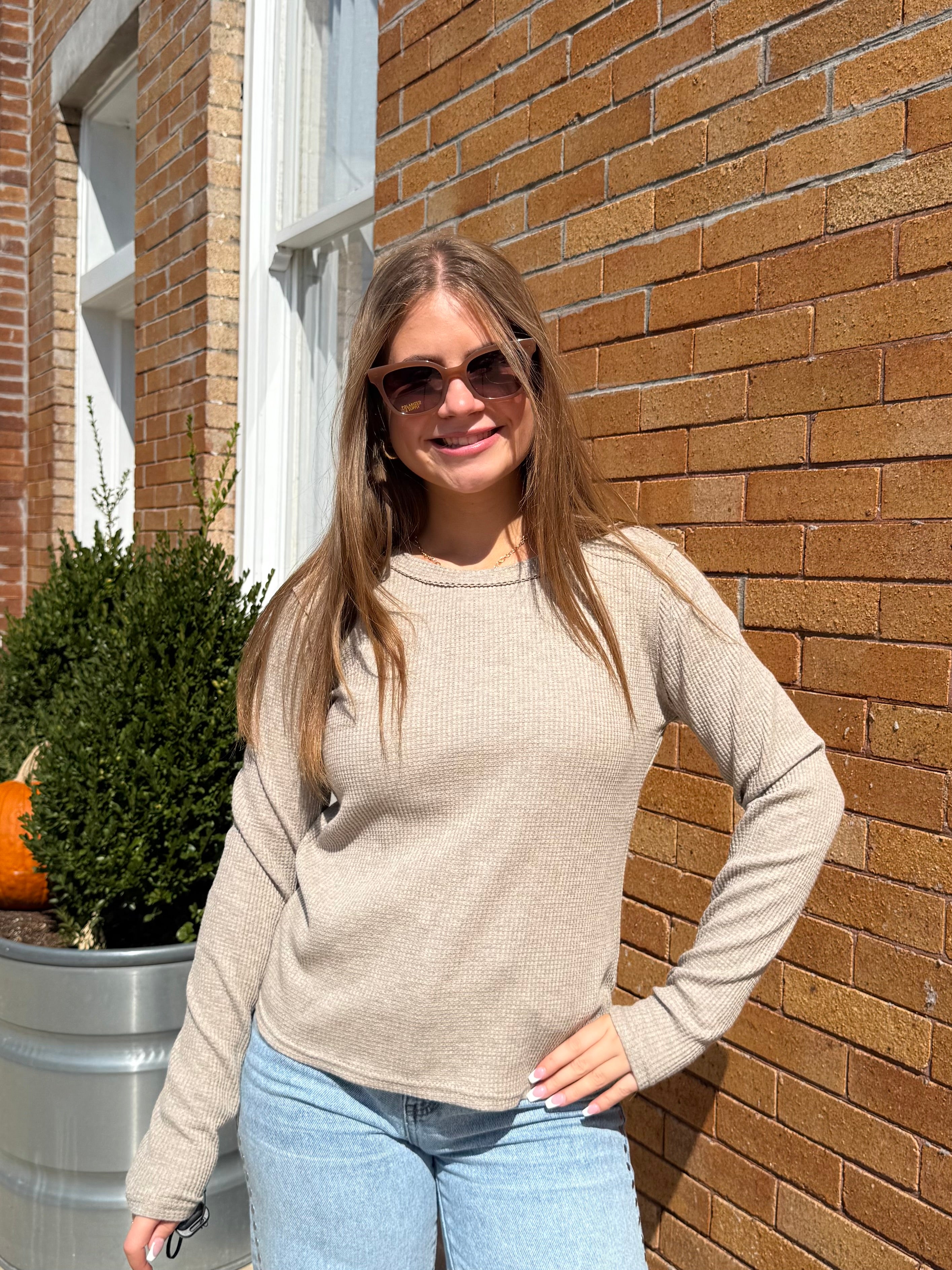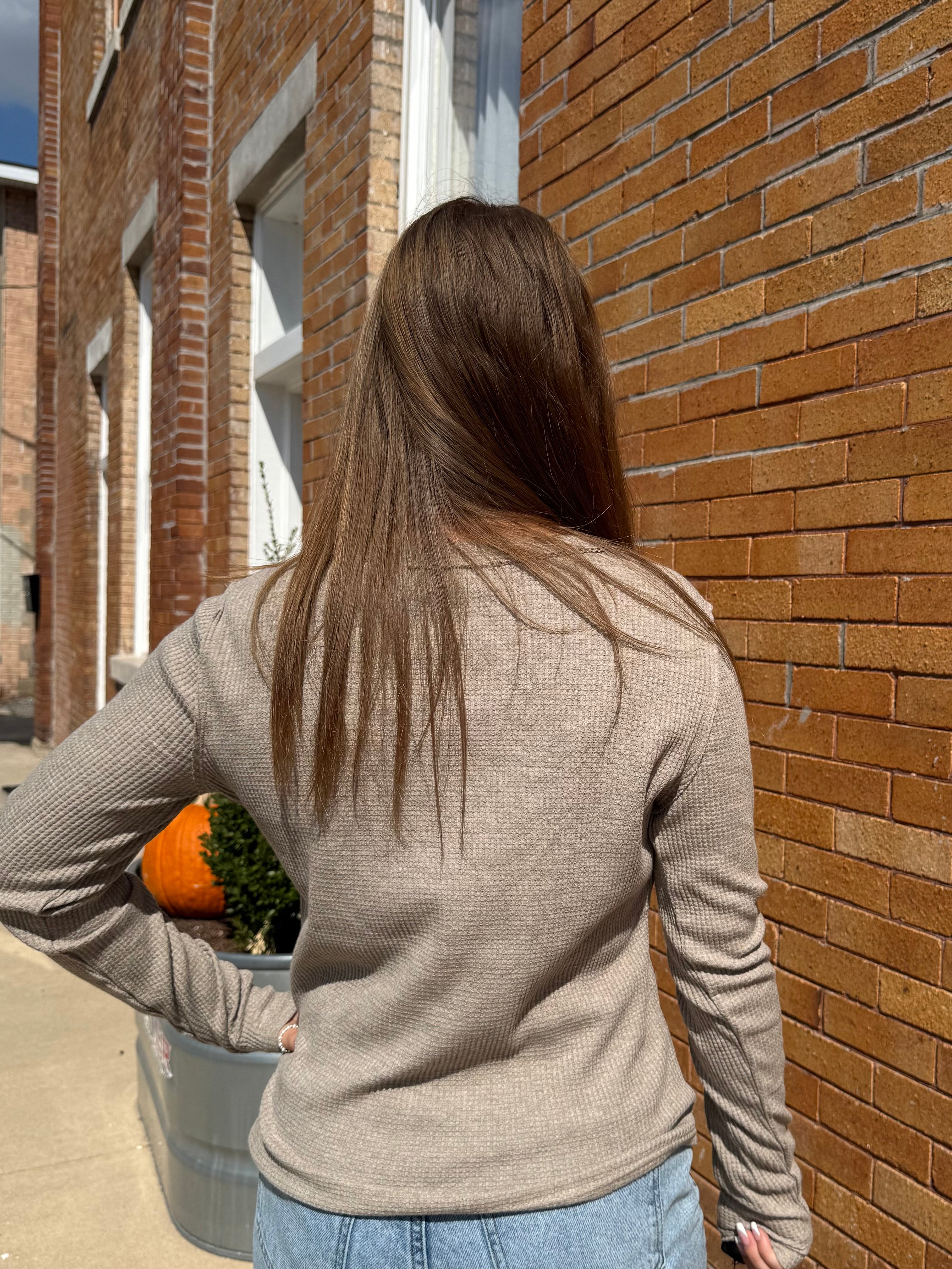 Arlet is the coziest waffle knit top!  Perfect on her own, or layered with your favorite flannels and vests.