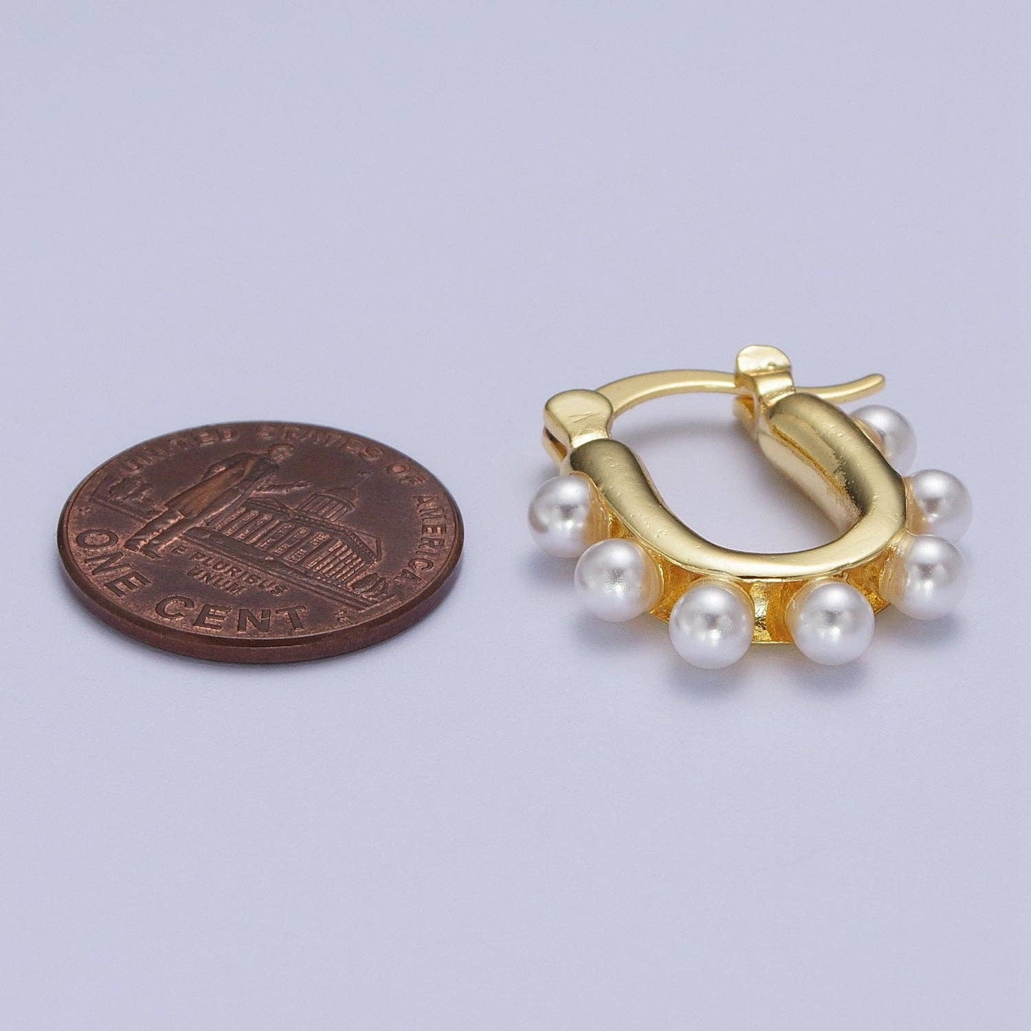 24K Gold Filled Round Pearl Lined 23.6mm U-Shaped Latch Earrings | Y20 – Lois Pearl Boutique