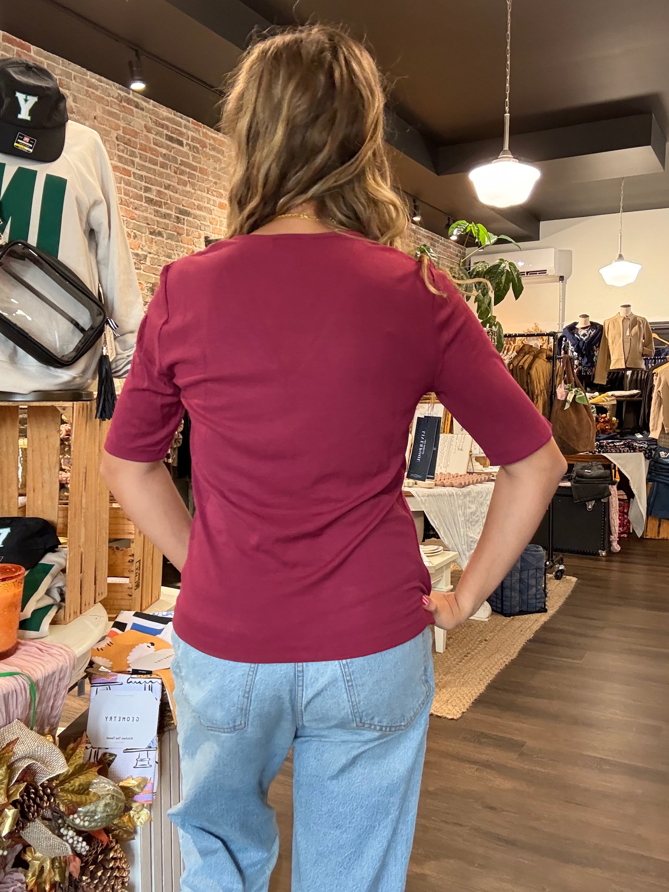 Meet your new go-to: a chic spin on the classic V-neck! Made from soft mini rib knit, this top hugs you in all the right places with a smooth double-layer front for extra confidence. The elbow-length sleeves add just the right amount of flair, making it perfect to wear from sharp daytime looks to easygoing nights out.